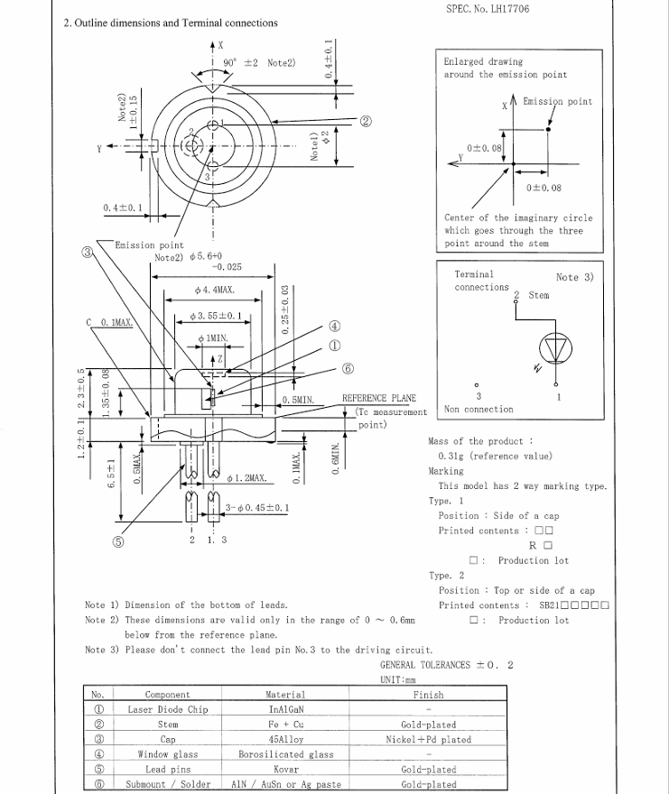 Sharp 505nm 35mW Green Laser Diode (TO18 5.6mm) GH05030C2LM